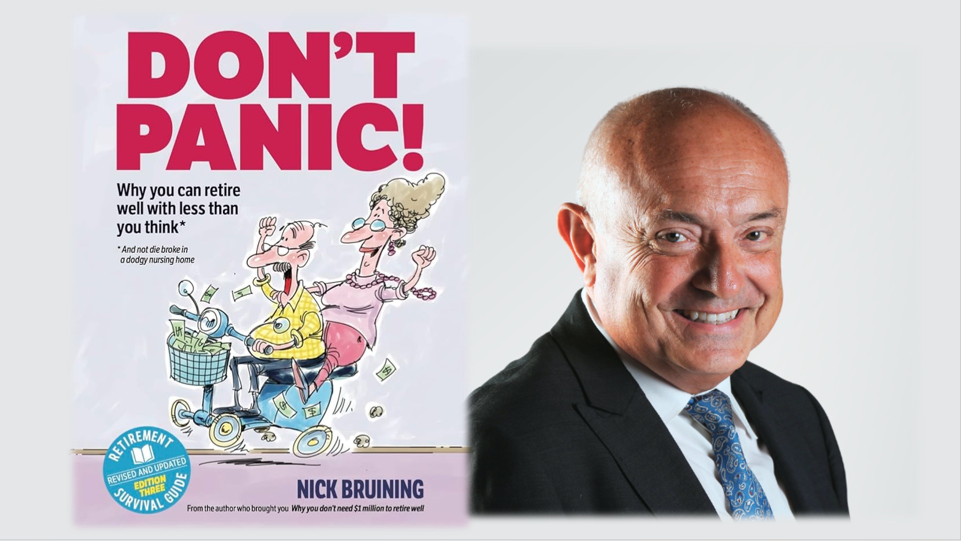 Nick Bruining’s new book Don’t Panic is for Australians retiring with modest savings, covering everything from Centrelink and tax to investments and super. The book is updated with the latest figures, strategies and practical tips from Nick’s 35+ years of financial planning experience.