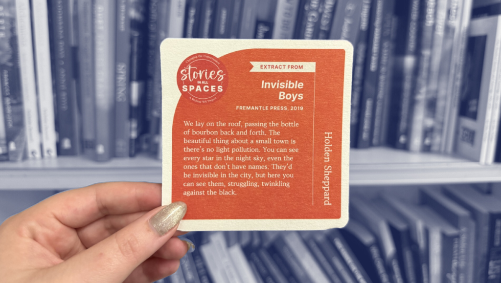 The coasters have been distributed around Perth, if you see a coaster post it to your socials with the hashtag #WritingWA and tag us @writingwa!
